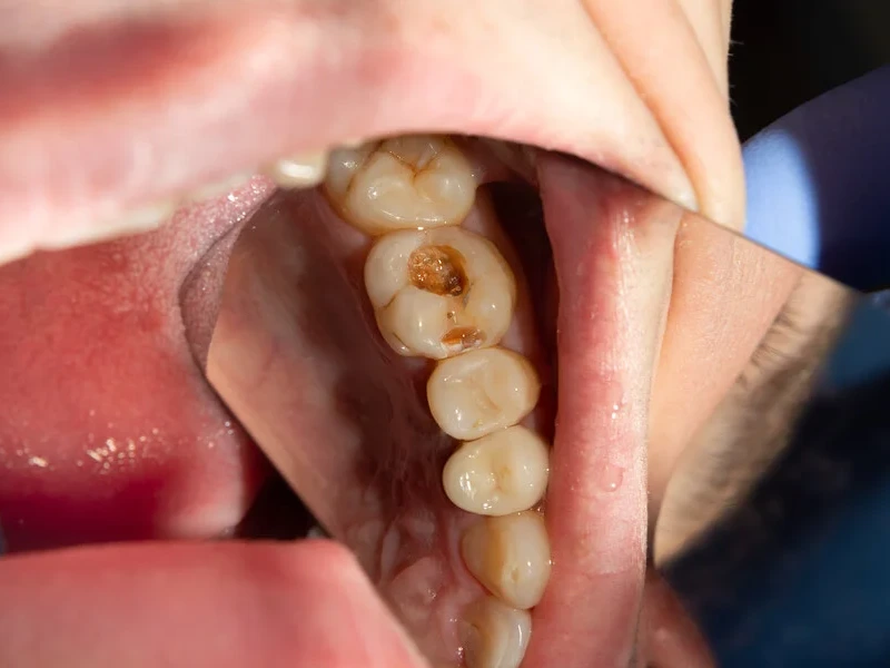 Si el proceso de desmineralización no se detiene a tiempo mediante una buena higiene bucal o con ayuda de tratamientos dentales, el esmalte comienza a romperse y se forma una cavidad o agujero en el diente. Esta es la fase en la que la caries ya es visible y puede causar dolor, especialmente si llega a las capas internas del diente.